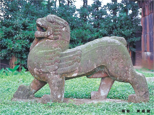 石獸和戰(zhàn)國時的青銅翼獸有繼承的關(guān)系,形狀上多似龍虎又如獅,全身從頭到尾仍有那起伏流轉(zhuǎn)的強(qiáng)健線條。漢代從西域傳入的獅子因為其勇猛而成為吉祥之獸,受到歡迎,石雕自然要和龍虎結(jié)合為一了。當(dāng)然,也有造型較明顯的石獅子。